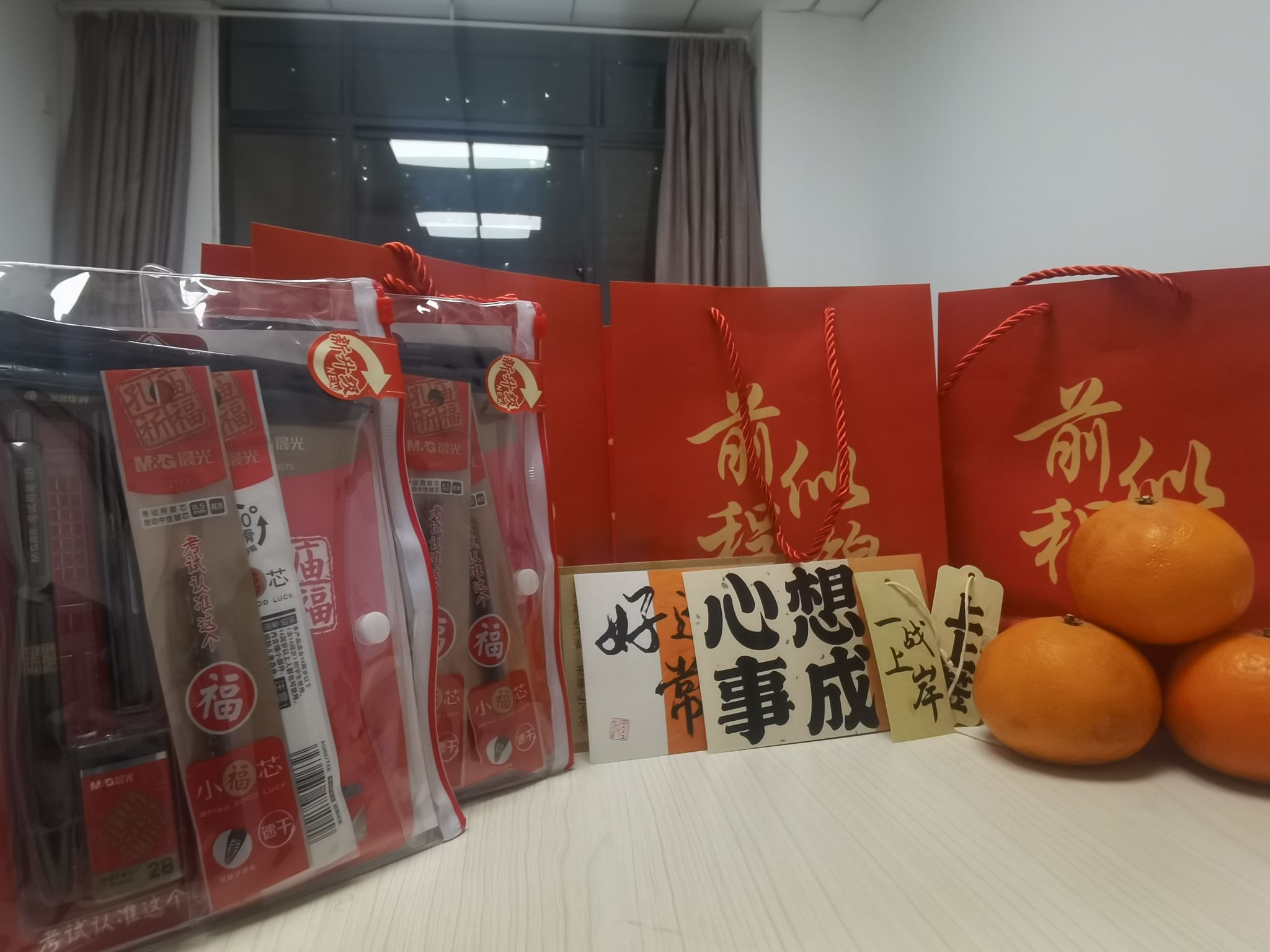 考研助力礼包内容丰富,包含了学院精心挑选的考研必备文具,确保同学们在考场上无后顾之忧;还有饱含深情的祝福贺卡,每一张贺卡象征着学院老师对同学们的殷切期望与真挚鼓励;更有寓意 “成功上岸” 的橙子,象征着学院对学子们能够顺利考入理想院校的美好祝愿。