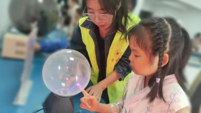 为做好此次开放日活动,物理实验中心老师和志愿者提前做好了充分的准备。活动现场,在教师和学生志愿者的精心组织下,青少年和家长有序参观物理演示实验室内陈列的丰富科技展品,享受了一场集视觉冲击与知识传递于一体的科学盛宴。志愿者们运用生动活泼的讲解方式,向孩子们阐释了实验背后的科学原理和操作技巧,营造出一个轻松愉悦的学习环境。