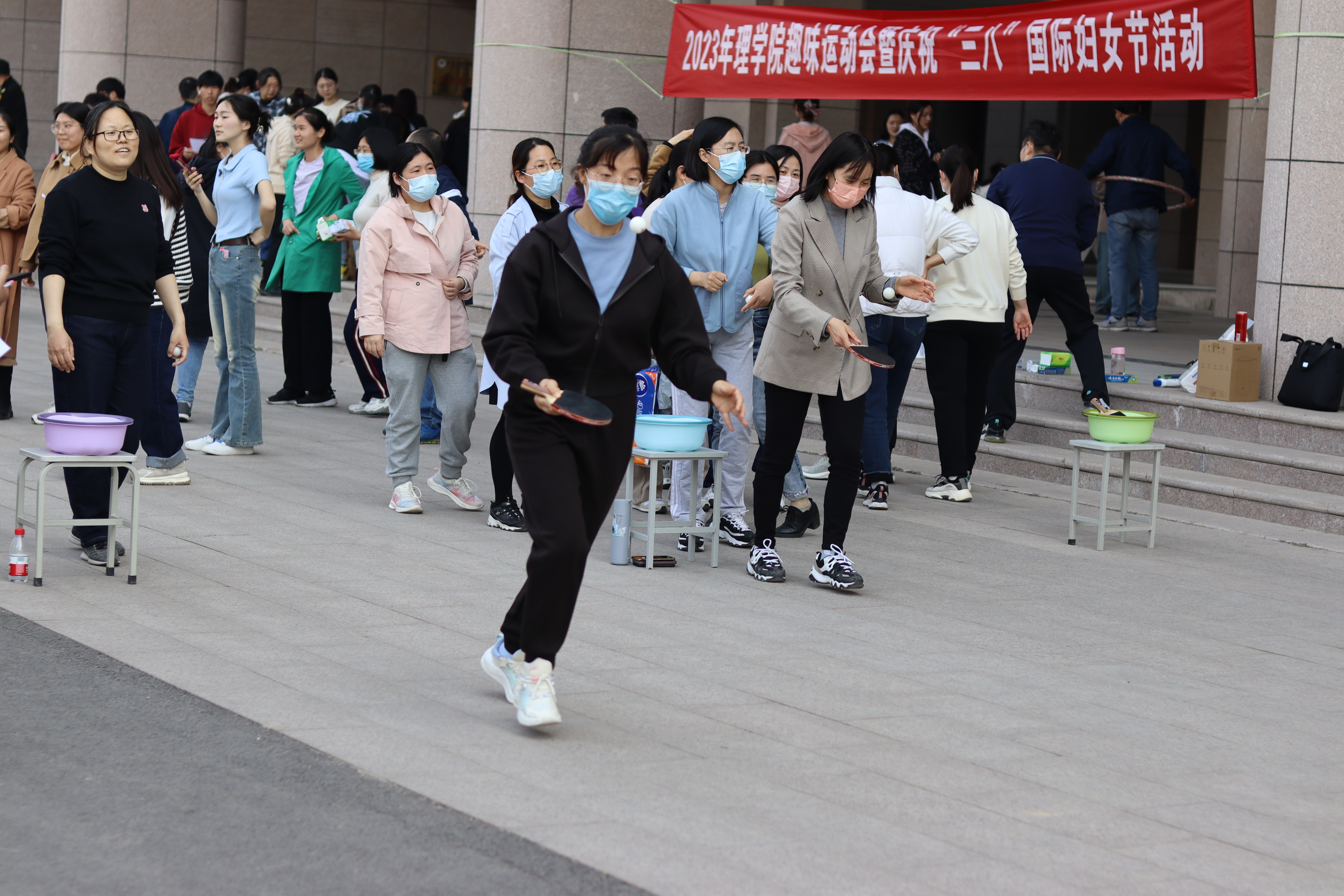 在实训中心前广场举办趣味运动会暨庆祝“三八”国际妇女节活动。学院领导班子成员及全体教职工参加了活动。活动由院党委副书记、工会主席吴春阳主持。