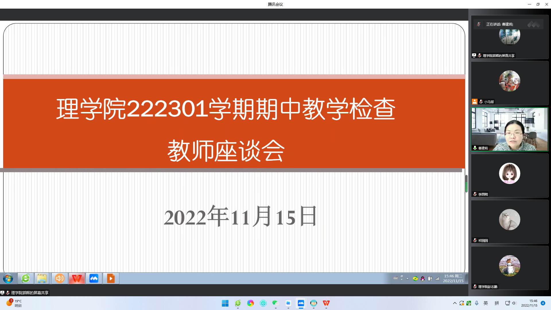 在教师座谈上,各任课教师围绕线上线下教学开展、学生学习状况等方面,分享了教学模式的转变、思政元素的融入等教学实践和成效。老师们通过观察学生不同时期的学习态度,积极创新授课方式,精心做好教学设计,激发学生学习兴趣,结合课程特色,在线上教学中融入思政元素引导学生遵守学校疫情防控规定,同心抗疫,确保了校园平安有序,为学生的个性化学习和自主学习提供更多关爱和帮助。