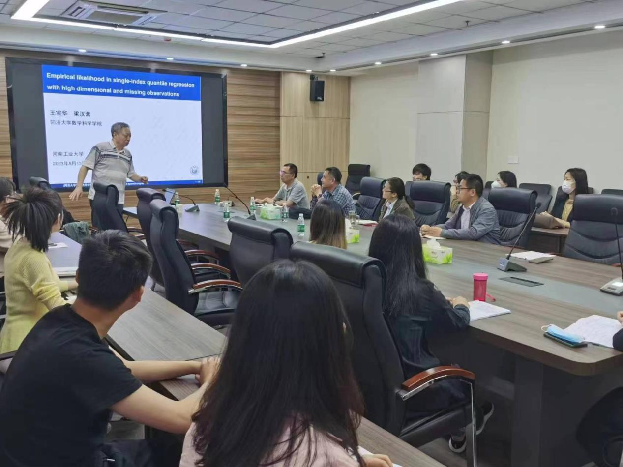 进行学术交流,并做了题为“Empirical likelihood in single index quantile regression with high dimensional and missing observations”的学术报告。曹建莉副院长、数学系相关教师和研究生参加了本次报告会,报告会由罗艳伟副院长主持。
