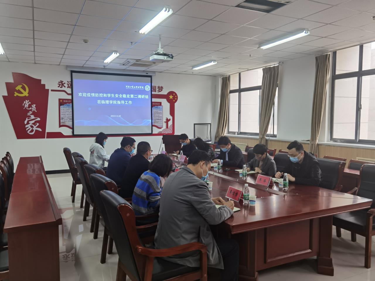 308会议室与参会人员进行深入交流。会上,张宏伟代表学院对调研组一行的到来表示热烈欢迎,他表示此次调研是对学院疫情防控和学生安全稳定工作的全方位诊断,对学院提升工作能力、确保安全稳定发挥着积极促进作用。